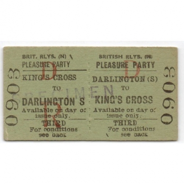 Railway Ticket, BR (N), Darlington - King's Cross, Pleasure Party, Serial No 0903
