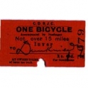 Travel Ticket, Ireland, CDRJC, Inver, One Bicycle, Serial No 1079
