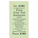 Spoof Ticket, Advertising Evans Fried Fish Restaurant, Bath. Phone 5181