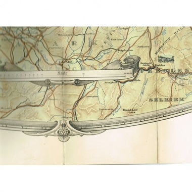 Colour lithographic pictorial map mounted on linen, folding into cloth-covered boards forming front & back cover (hardbound).