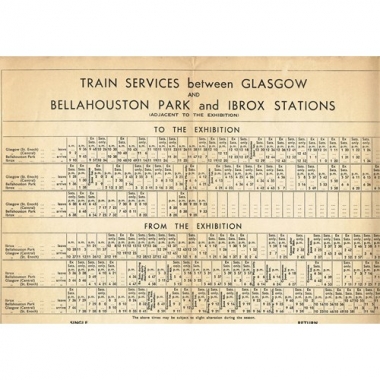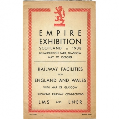 Empire exhibition Scotland, 1938, Bellahouston Park, Glasgow, May to October. Railway facilities from England and Wales with map of Glasgow showing railway connections, LNER and LMS