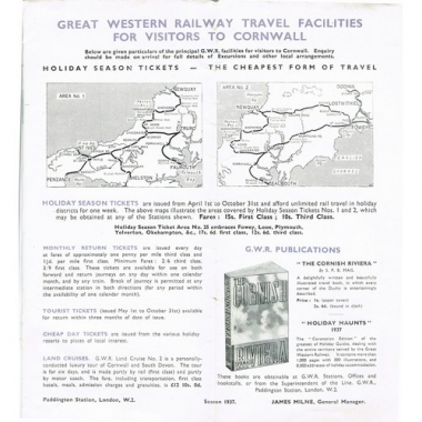1937 season, issued by GWR, James Milne, General Manager