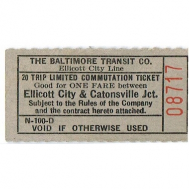 Tram/Streetcar Ticket, USA, The Baltimore Transit Co, Ellicott City - Catonsville Jct, Serial No 08717