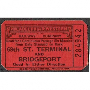 Tram/Streetcar Ticket, USA, Philadelphia & Western Railway Co, 69th St Terminal - Bridgeport, Serial No 284942