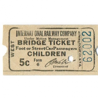 Tram/Streetcar Ticket, USA, International Railway Company, Under Mitten Management, Bridge Ticket, Serial No 62002