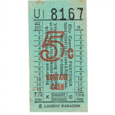 Tram Ticket, South Africa, City Council of Pretoria, Serial No 8167