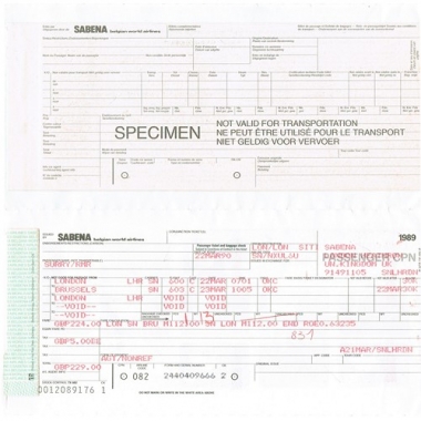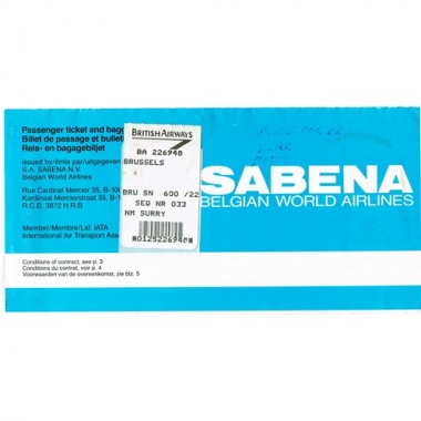 Air Ticket, Sabena Belgian World Airlines, London - Brussels, Serial No 91491105
