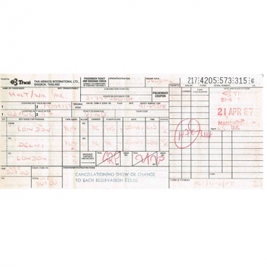 Air Ticket, Thai Airways, London - Delhi, Serial No 573 315