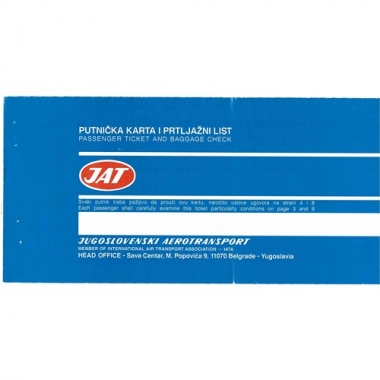 Air Ticket, JAT (Yugoslavia), Belgrade - London, Serial No 91490932
