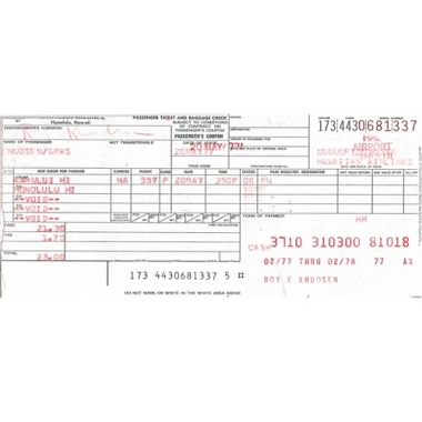 Air Ticket, Hawaiian Air, Kahului - Honolulu, Serial No 681337