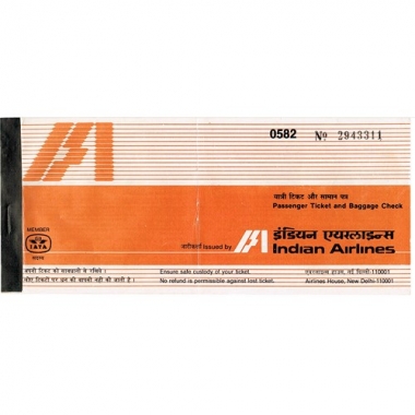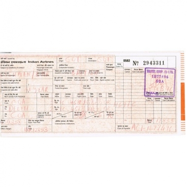 Air Ticket, Indian Airlines, Goa - Delhi, Serial No 2942211