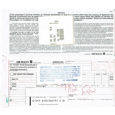 Air Ticket, Air Malta, London Heathrow - Malta, Serial No 368156