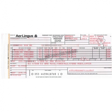 Air Ticket, Aer Lingus, Bristol - Dublin - Cork, Serial No 418769