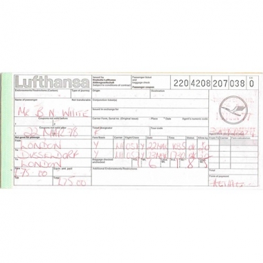 Air Ticket, Lufthansa, London - Dusseldorf, Serial No 207038
