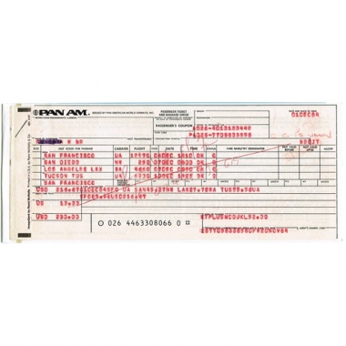 Air Ticket, Pan Am, San Francisco - San Diego - Lon Angeles - Tucson, Serial No 308066