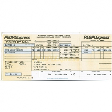 Air Ticket, People Express Airlines, New York - Portland, Serial No 145670