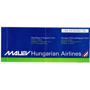 Air Ticket, Malev, Thessaloniki - Budapest - London, Serial No 000770