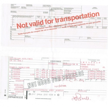 Air Ticket, Swiss Air, Tirana - Vienna - London - Zurich, Serial No 232518