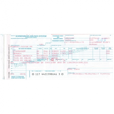 Air Ticket, SAS, Stavanger - Bergen - London Gatwick, Serial No 598646