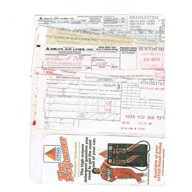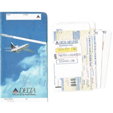 Air Ticket, Delta Airline wallet containing tickets and boarding passes, Serial No 376969 etc