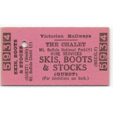 Ticket, Australia, Victorian Railways, The Chale, Mt Bufalo National Park, Hire Services (Skis, Boots & Stocks), Serial No. 5934