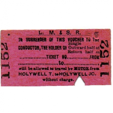 Road Ticket, LM&SR, Voucher to travel by motor, Holywell T - Holywell JC, Serial no 1152