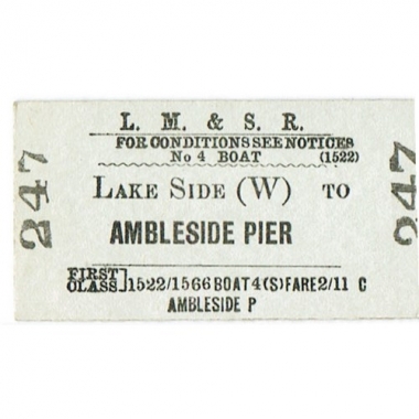Water Ticket, LM&SR, Lake Side (W) - Ambleside Pier, Serial No 247
