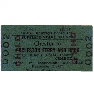 Water Ticket, BRB(M), Supplementary Ticket, Chester - Eccleston Ferry, Serial No 0002