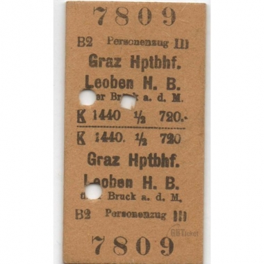 Railway Ticket, Austria, Sudbahn-Gesellschaft, Graz Hptbhf - Leoben, Serial No 7809