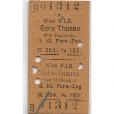 Railway Ticket, Austria, Wien - Gars-Thunau, Serial No B 1312