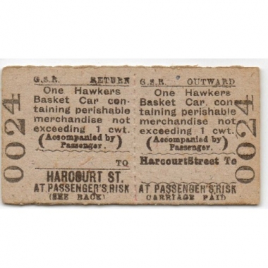 Railway Ticket, Republic of Ireland, GSR, Harcourt Street - , One Hawkers Basket Car, Serial No. 0024