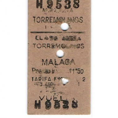 Railway Ticket, Spain, Renfe, Malaga - Torremolinos, Serial No H9538