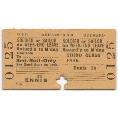 Railway Ticket, Republic of Ireland, GSR, Ennis - , Soldier or Sailor on Week-End Leave, Serial No. 0125