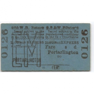 Railway Ticket, Republic of Ireland, GS&W, Portarlington - , 2nd Class Express, Serial No. 0126