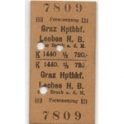 Railway Ticket, Austria, Sudbahn-Gesellschaft, Graz Hptbhf - Leoben, Serial No 7809