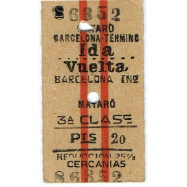 Railway Ticket, Spain, Renfe, Mataro - Barcelona, Serial No 86352