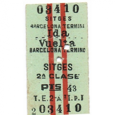 Railway Ticket, Spain, Renfe, Sitges - Barcelona Termino, Serial No 03410