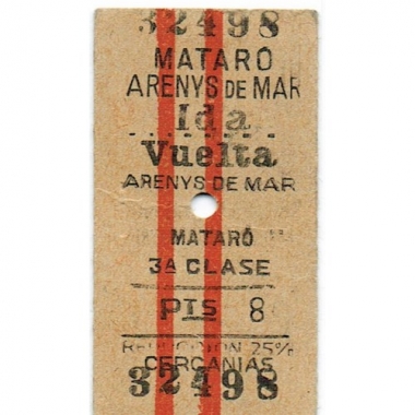 Railway Ticket, Spain, Renfe, Mataro - Arenys De Mar, Serial No 32498