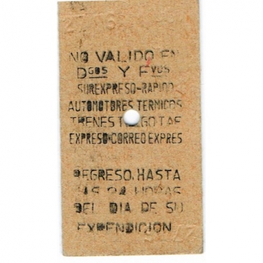 Railway Ticket, FGB, Villa Adelina - Balneario, Serial No 36238