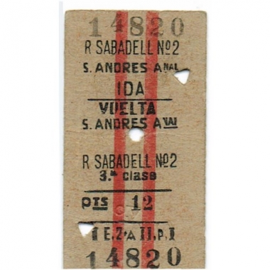Railway Ticket, Spain, Renfe, San Andres - Sabadell, Serial No 14820