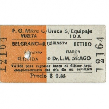 Railway Ticket, FCGM, Belgrano - Florida, Serial No 12164