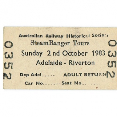 Railway Ticket, Australia, Australian Railway Historical Society, Adelaide - Riverton, Serial No 0352