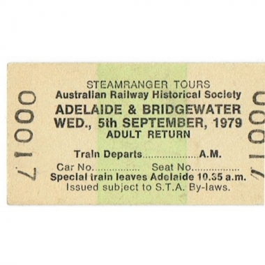 Railway Ticket, Australia, Australian Railway Historical Society, Steamranger Tours, Adelaide - Bridgewater, Serial No 00017