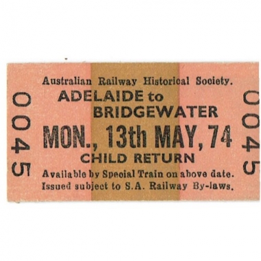 Railway Ticket, Australia, Australian Railway Historical Society, Adelaide - Bridgewater, Serial No 0045