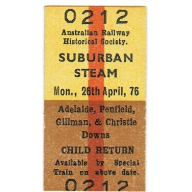 Railway Ticket, Australia, Australian Railway Historical Society, Suburban Steam, Adelaide - Christie Downs, Serial No 0212