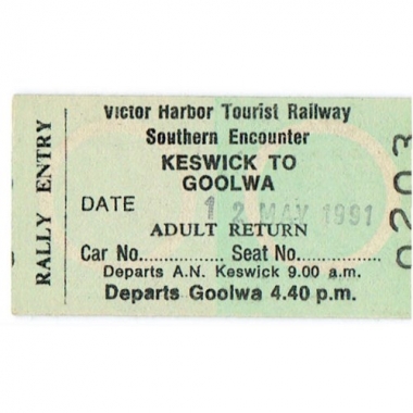 Railway Ticket, Australia, Victor Harbor Tourist Railway, Southern Encounter, Keswick - Goolwa, Serial No 0203