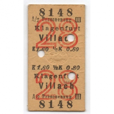 Railway Ticket, Austria, KK Priv Sudbahn, Klagenfurt - Villach, Serial No 8148