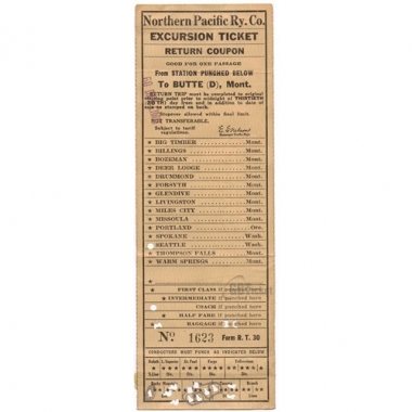 Railway Ticket, USA, Northern Pacific Ry Co, Seatlle - Butte, Serial No 1623