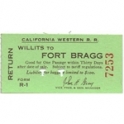 Railway Ticket, USA, California Western R R, Willits - Fort Bragg, Serial No 7253