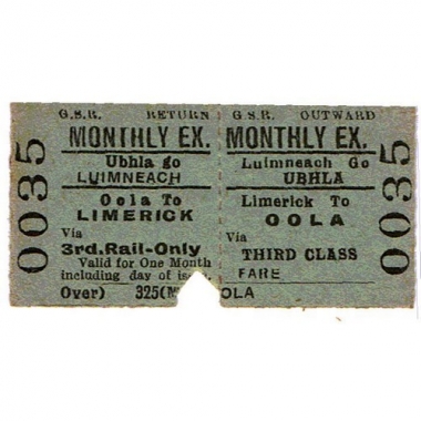 Rail Ticket, Ireland, GSR, Limerick - Oola, Serial 0035